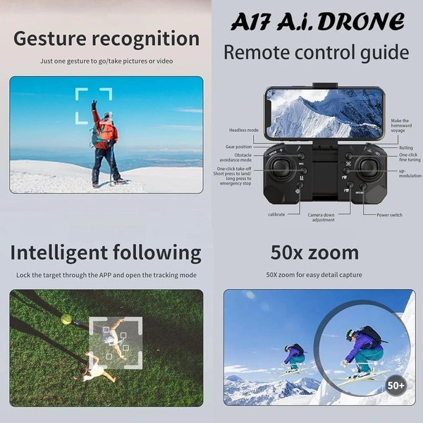 Don’t wait to bring the sky to your fingertips. Order your a17 aerial drone today and enjoy: